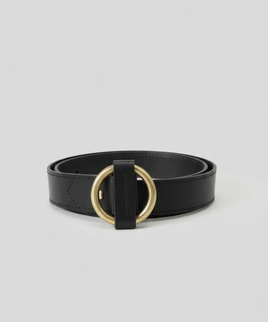 CINTURÓN DE PIEL HEBILLA REDONDA NEGRO