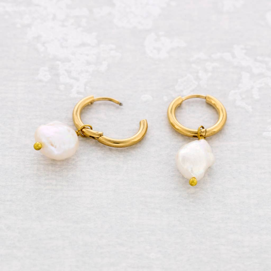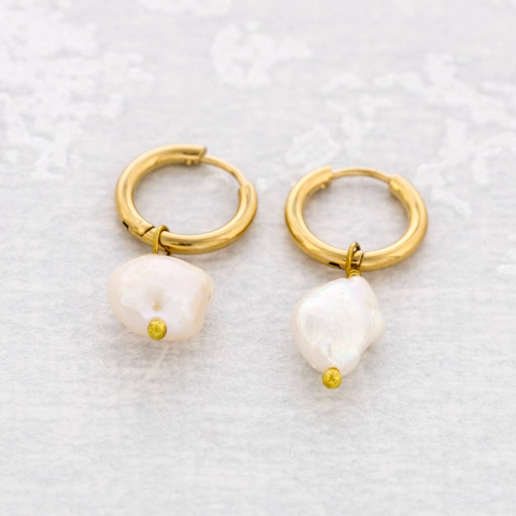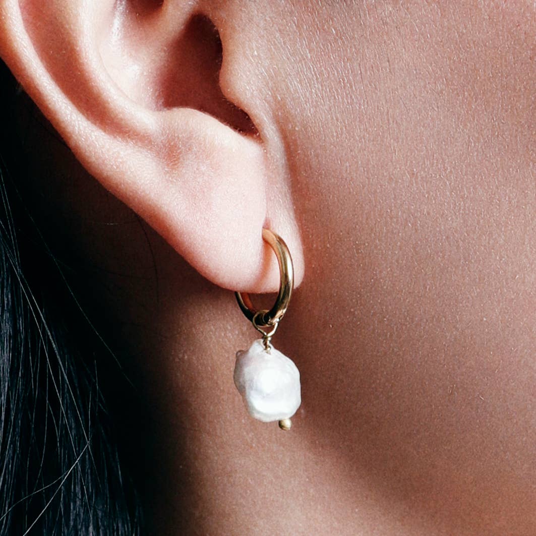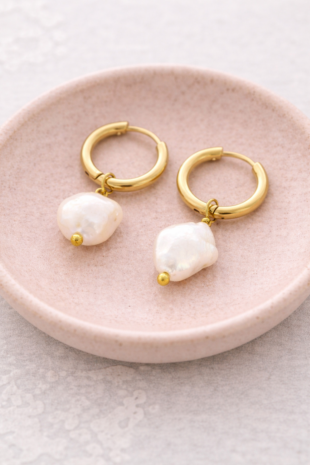 AROS PEQUEÑOS DE ACERO CON ACABADO DORADO Y PERLAS COLGANTES QUE APORTAN MOVIMIENTO Y LIGEREZA A LA PIEZA. EL CONTRASTE ENTRE EL ARO PULIDO Y LA PERLA CREA UN EFECTO LUMINOSO, FINO Y MUY ELEGANTE. UNA JOYA SUTIL CON PRESENCIA, EQUILIBRADA Y ATEMPORAL.